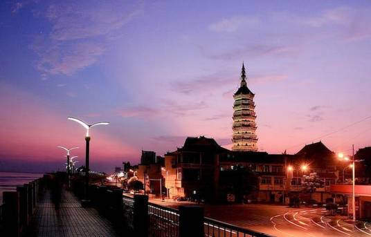 振風塔,坐落于安徽省安慶市迎江寺內(nèi),原名萬佛塔,又名迎江寺塔,后取名“振風”,有“以振文風”之意。振風塔位于安徽省安慶市迎江區(qū)沿江東路北側(cè),瀕臨長江。安慶振風塔從明穆宗隆慶二年(1568年)開始興建,于明隆慶四年(1570年)建成,是長江沿岸古塔之一。該塔除具有佛塔的功能外,還具有導航引渡的功能。塔高72.74米,位居全國108座磚石結(jié)構(gòu)古塔中第二,享有“萬里長江第一塔”和“過了安慶不看塔”的盛譽。此塔挺拔秀麗,氣勢宏偉,共七層八角,內(nèi)有168級臺階,浮雕佛像達千余尊。