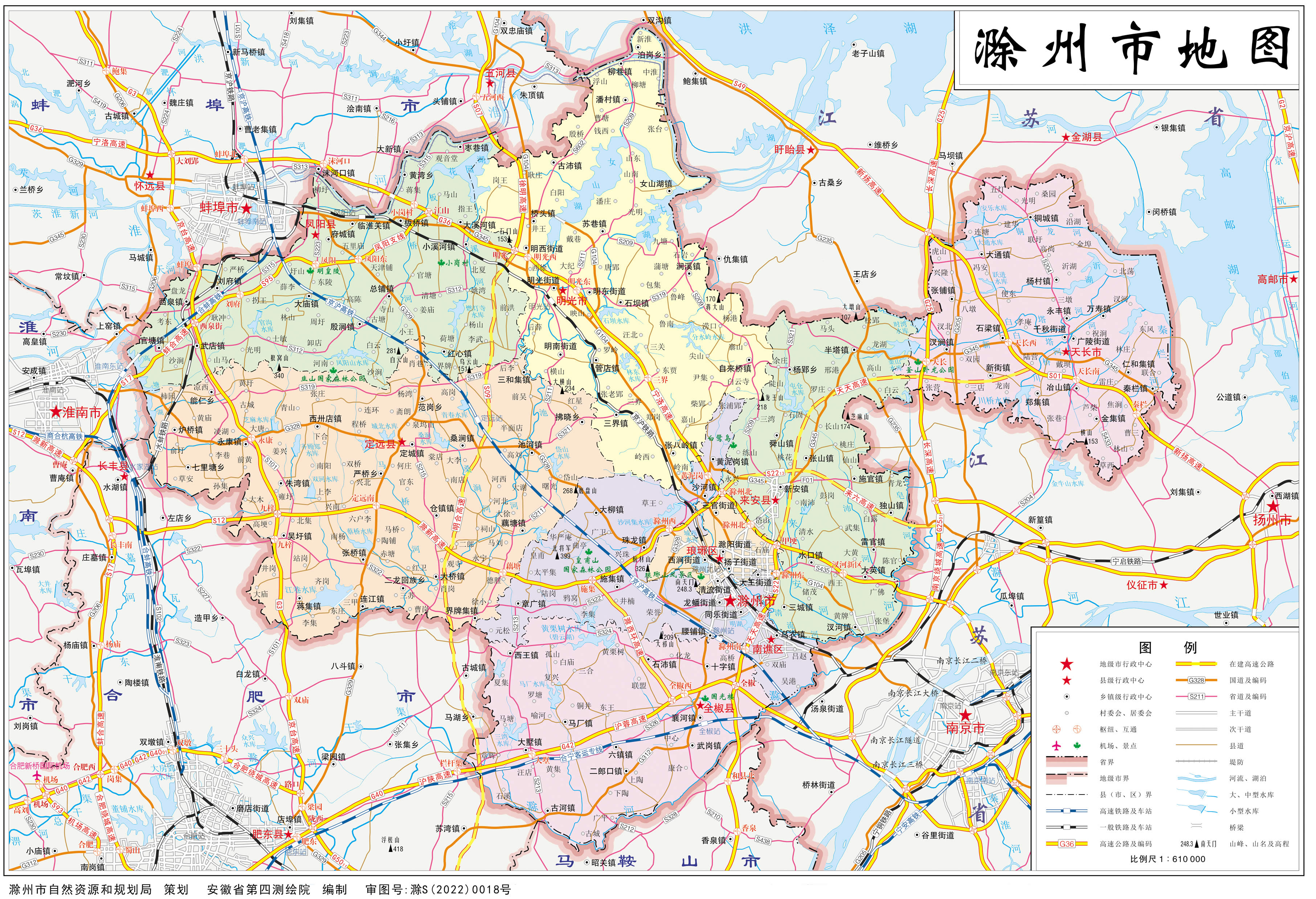 滁州市轄2個市轄區(qū)、4個縣,另外代管2個縣級市: