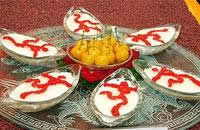 上窯粗條馓子,也稱“油果”、“油面條”。(上窯、洛河一帶較為多見)用面粉、明礬、精鹽、白糖等和成油面,把油面盤擰成網(wǎng)被形,下入油鍋中浸炸定形,成品后有乳白色、淡黃色、金黃色。具有軟、脆、焦、酥、香、鮮、咸、微甜等特點。它可直接食用,也可燴、涮、淡季制餒,可做主料、輔料。