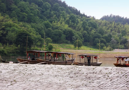 漁梁古壩位于城南1公里處的練江中,是新安江上游古代攔河壩,已有近1400年的歷史了。它橫截練江,使壩上水勢平坦,壩下激流奔騰。壩南端依龍井山,北端接漁梁古鎮(zhèn)老街。這條老街保存完好,是典型的徽派民居布局,窄窄的青石板路往河邊側(cè)有許多叉口,拾級(jí)而下,可下到漁梁壩。