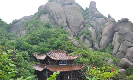 在十王峰北,海拔1306米。峰頂南北狹長,有青龍背、玉屏臺、一線天、大鵬聽經(jīng)、金雞石、捧日亭、地藏禪林、金仙洞諸景。天臺正頂聳立著九華山最高的寺廟。清光緒山志曾列“天臺曉日”為九華十景之一。