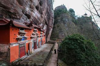 紫霄崖:于齊云巖西南。從浮云嶺西行,經(jīng)百丈泉、馴鹿洞、紫玉屏即達。古跡有:玉虛宮、治世仁威宮、天乙真慶宮、唐寅手撰碑銘、風(fēng)虎關(guān)、云龍關(guān)遺址及摩崖石刻30余處。
