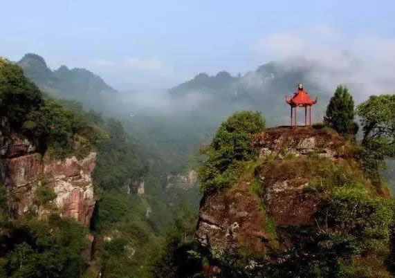 仙人花轎:紅色丹霞巖層,經(jīng)長期的雨侵風(fēng)蝕,自然形成獨立而方正的山體景觀。