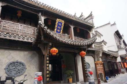 三河古鎮(zhèn)在建筑體量上一般為1~2層,一層為鋪,二層為宅,多為前鋪后宅,坊宅混合。古鎮(zhèn)建筑平面布局由“合院”作為基本單元組合而成,以三合院、四合院為主,既有北方的合院形式,又有南方的天井院落。院落坐北朝南,布局中軸對稱,平面形式主要表現(xiàn)為“凹”字型、“回”字型、“H”字型、“日”字型等!鞍肌毙推矫婕慈g式,為三間一進(jìn)樓房,天井在前,廳堂居后,左右?guī)糠至袃蓚?cè);“回”形平面即四合式,為三間兩進(jìn)樓房,是兩組三間式相向的組合,天井置中,廳堂靠后,四廂房分列四角;“H”形平面即三間兩進(jìn)堂中間為兩個三間式相背組合;“日”形平面即三間三進(jìn)式,第一進(jìn)與第二進(jìn),第二進(jìn)與第三進(jìn)之間各有天井,即兩個“凹”形平面的縱向并置。在大戶民居中,二層設(shè)有轉(zhuǎn)心樓,是圍繞天井的環(huán)形回廊,憑欄而立,對面及上下講話可以清晰地聽見,具有四合院式徽派風(fēng)格建筑的特點(diǎn)。民居頂部建設(shè)有向內(nèi)凹曲的廡殿頂,為江淮地區(qū)古民居獨(dú)有的空間形式。
