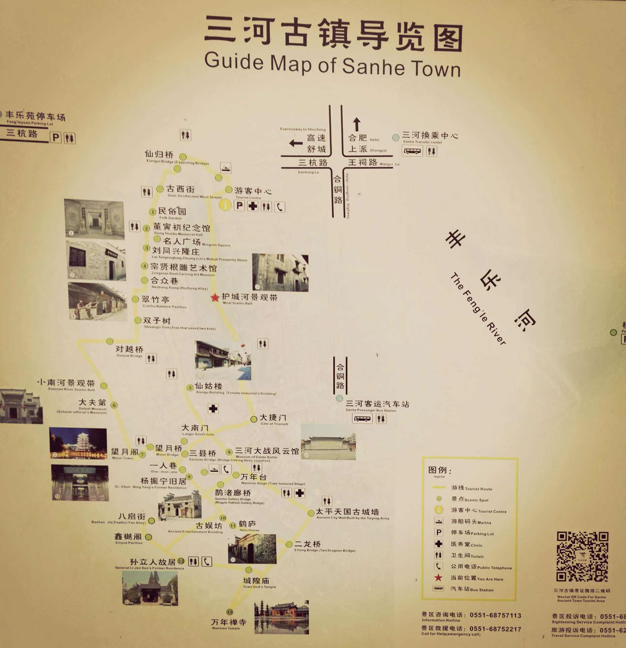 三河古鎮(zhèn)有豐樂河、杭埠河、小南河在境內(nèi)匯合,經(jīng)新河向東流約15公里入巢湖。鎮(zhèn)內(nèi)有古城墻、古炮臺、太平軍指揮部舊址、英王府、一人巷、萬年臺、李府糧倉、鶴廬、劉同興隆莊等歷史遺跡,是廬劇的發(fā)源地,古鎮(zhèn)有米餃、牛皮糖、酥糖、麥芽糖、茶干、米酒等特產(chǎn)。