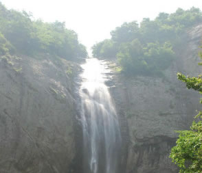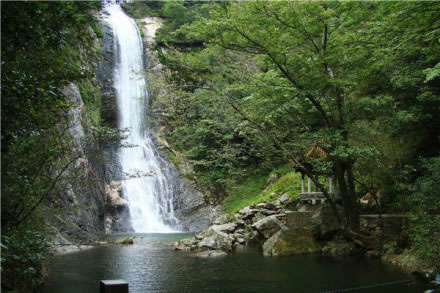天堂寨森林公園的水景主要表現(xiàn)在瀑布與溪水潭池上,其中尤以一號(hào)瀑布、三號(hào)瀑布、龍井河溪為最。一號(hào)瀑布(九影瀑布):瀑布高掛,落差71米,水簾幅寬8米,瀑布下有深潭,潭面30平方米。三號(hào)瀑布(瀉玉瀑布)垂直高度62米,水簾寬11—13米,瀑巖呈淡紫色,略傾斜且?guī)r面凸凹參差不齊。