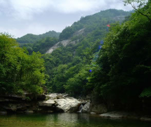 從羅田天堂寨風(fēng)景區(qū)管理處向南沿河步行200m即可到達(dá)。神仙谷全長(zhǎng)約2500m,該谷由龍井河、蕭家河兩條溪流匯集而成,河谷寬約30-40m。