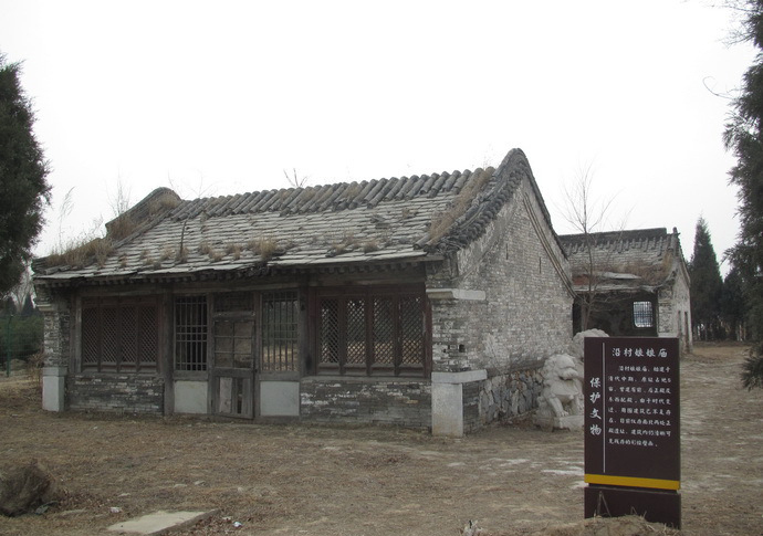 沿村娘娘廟 沿村娘娘廟始建于明代,清代中期重修,2011年在拆除村辦企業(yè)大棚后顯露出來。依地勢(shì)坐南朝北。原為四合式,由于時(shí)代的變遷,周圍建筑已不存,現(xiàn)僅存前、后兩進(jìn)殿宇,前殿為硬山筒瓦卷棚頂,前后出廊;后殿為硬山筒瓦大式,前出廊。兩進(jìn)殿均為石望板頂,廊心墻處為軟心,梁檁彩繪及壁畫仍清晰可見。