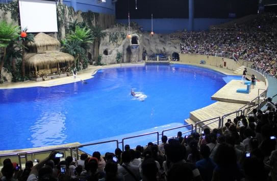 海洋劇院——中國(guó)同類(lèi)型最大、擁有三千多座位的海洋劇院里,海豚表演和海獅表演的場(chǎng)館。