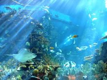 每天上午10:00和下午1:30(周二除外),在海底環(huán)游入口處有潛水喂食表演。潛水員身背氧氣瓶攜帶各種食料下水,邊喂食邊向游客介紹不同品種的魚(yú)類(lèi),最吸引游客的是身型扁平的魟魚(yú)(俗稱(chēng)魔鬼魚(yú))。魟魚(yú)主要以小型無(wú)脊椎或浮游動(dòng)物為食,大部分時(shí)間性情溫和,所以潛水員可以用手把食物送進(jìn)魚(yú)嘴里。但魟魚(yú)的魚(yú)尾生有毒刺,如果它感覺(jué)受到威脅會(huì)以毒刺自衛(wèi)(有人被魟魚(yú)刺死的事件報(bào)告),所以這項(xiàng)表演也具有一定的危險(xiǎn)性。
