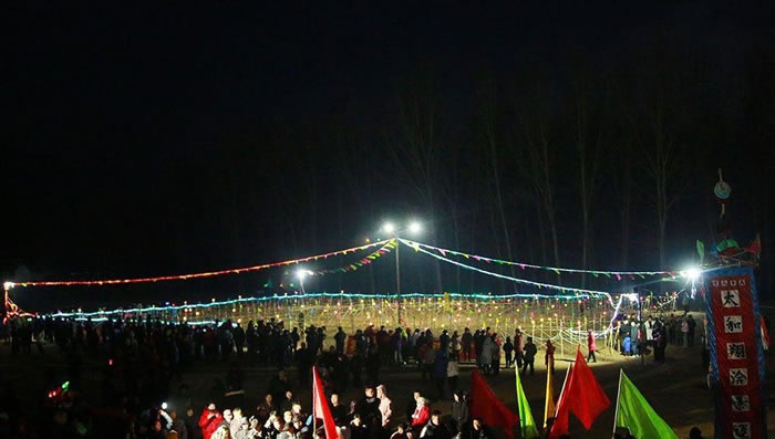 九曲黃河陣燈俗 九曲黃河陣燈俗俗稱“燈場子”,流傳于太師屯鎮(zhèn)東田各莊村。 明代洪武四年(1371),山西移民將“燈場子”傳入東田各莊,傳承至今,已有六百多年的歷史。 村中劉繼華老人保存的九曲黃河陣燈會圖譜已有百年歷史,圖中陣式按周易九宮八卦方位,以富貴不斷頭的傳統(tǒng)圖案九曲而成。陣內乾、坎、艮、震、巽、離、坤、兌八宮加上中宮共有九宮,系模擬古代戰(zhàn)陣而成。 每年春節(jié)期間,東田各莊農歷正月初十開始扎燈,正月十四、十五、十六三天正式舉行燈會,正月十七后撤燈。燈會期間,人們從四面八方趕來觀燈賞會,走燈陣,看大戲。走進燈陣入口以后,如能順利地通過連環(huán)陣,再從出口返回,就意味著一年順順當當、平平安安,故當地有“順著燈陣走,能活九十九”的說法。 東田各莊九曲黃河陣燈俗有兩個主要特點,一是燈場與花會相結合,二是燈會與戲曲表演相結合。九曲黃河陣燈會帶有某種智能游戲的性質,燈陣及其外延的燈會包含著豐富的文化內涵,具有較高的歷史文化研究價值。 2008年6月7日,九曲黃河陣燈俗被國務院公布為第二批國家級非物質文化遺產名錄。 風景名勝
