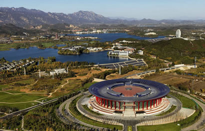 北京雁棲湖國際會(huì)展中心位于雁棲湖西南側(cè),坐落于范崎路上,建筑主體是圓形大樓,建筑造型外觀似天壇無蓋,寓意天圓地方,設(shè)計(jì)風(fēng)格與雁棲島上的雁棲湖國際會(huì)議中心相輔相成。主要功能是供各大公司 產(chǎn)品發(fā)布、展覽等等,2015年第五屆北京國際電影節(jié)開閉幕式舉辦地。