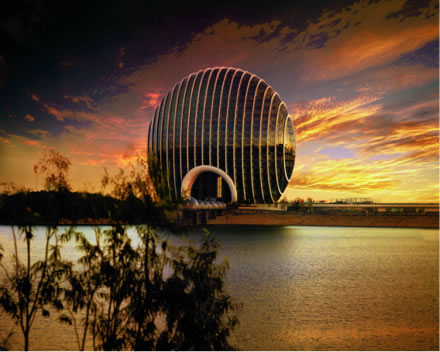 北京日出東方凱賓斯基酒店:建筑外形宛如一輪冉冉升起的太陽,象征著和諧統(tǒng)一,故名為日出東方酒店。從側(cè)面看,酒店建筑是扇貝的形狀,扇貝在中國文化里代表了財(cái)富;配合酒店建筑正面的圓形“旭日東升”寓意,也代表著中國的蓬勃發(fā)展。如果從空中俯瞰,酒店的裙樓形狀酷似“祥云”,也代表了中國文化中“彩云追日”的浪漫寓意。