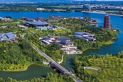 主要建筑包括雁棲湖國際會(huì)議中心,及一批供會(huì)議領(lǐng)導(dǎo)人住宿休息的別墅。
