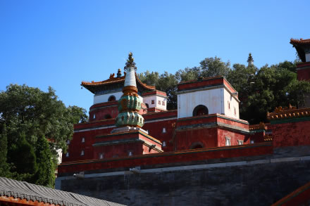萬壽山后山、后湖古木成林,有藏式寺廟,蘇州河古買賣街。后湖東端有仿無錫寄暢園而建的諧趣園,小巧玲瓏,被稱為“園中之園”。