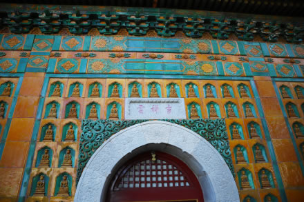 智慧海是萬壽山頂最高處一座宗教建筑,是一座完全由磚石砌成的無梁佛殿,由拱券結(jié)構(gòu)組成。建筑外層全部精美的黃、綠兩色琉璃瓦裝飾,上部用少量紫色、藍(lán)色的琉璃瓦蓋頂,尤以嵌于殿外壁面的千余尊琉璃佛更富特色!爸腔酆!币辉~為佛教用語,本意是贊揚佛的智慧如海,佛法無邊。該建筑雖極像木結(jié)構(gòu),但實際上沒有一根木料,全部用石磚發(fā)券砌成的,沒有枋檁承重,所以稱為“無梁殿”。又因殿內(nèi)供奉了無量壽佛,所以也稱它為“無量殿”。