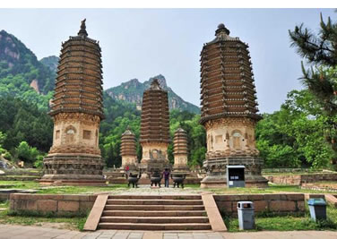 其他11座塔均為喇嘛塔。有石及磚石兩種結(jié)構(gòu)形式,形制較簡(jiǎn)單,尺度亦較小,最高的自塔頂圓盤至地面高5.71米,最低的殘存部分僅高1米有余。備塔的形制、基座部分均為石砌須彌座式,平面有四邊和六邊形兩種形式。塔身部分均為覆缽形,有磚砌和石砌兩種。石砌的塔身均于正面設(shè)有眼光門。塔身與基座之間施以石刻蓮瓣及金剛?cè)?shù)層。塔頂部分,塔脖子均作石刻束腰形,其上為相輪組成的十三天及圓盤等石刻裝飾。 |