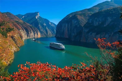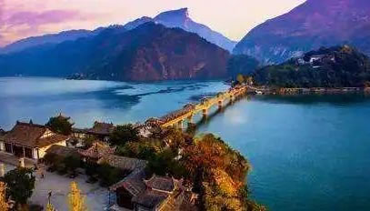 瞿塘峽又名夔峽。古時稱廣溪峽、巴峽、西陵峽等,為長江三峽第一峽。瞿塘峽西起奉節(jié)白帝城,東至巫山大溪鎮(zhèn),名勝古跡最為豐富。峽谷陡峭,兩岸雙峰欲合,斷巖千尺,古木蒼藤,好似繡幕高懸;峽中江水排山倒海,勢如山崩,聲震數(shù)里。2008年,三峽大壩蓄水至海拔175米后,瞿塘峽已是高峽平湖,兩岸險峰峻石依舊,既有滿山紅葉似彩霞的絢麗多姿,又有碧水蕩漾、煙波浩渺的靜美壯闊。