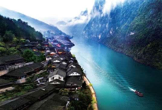 烏江畫廊指從龔灘至貴州沿河100余千米的烏江河段,是烏江流域景色最為壯麗的一段。船行其中,水碧山青如水墨長卷,有“船在水中行,人在畫中游”之感,因此有“千里烏江,百里畫廊”之譽(yù)。