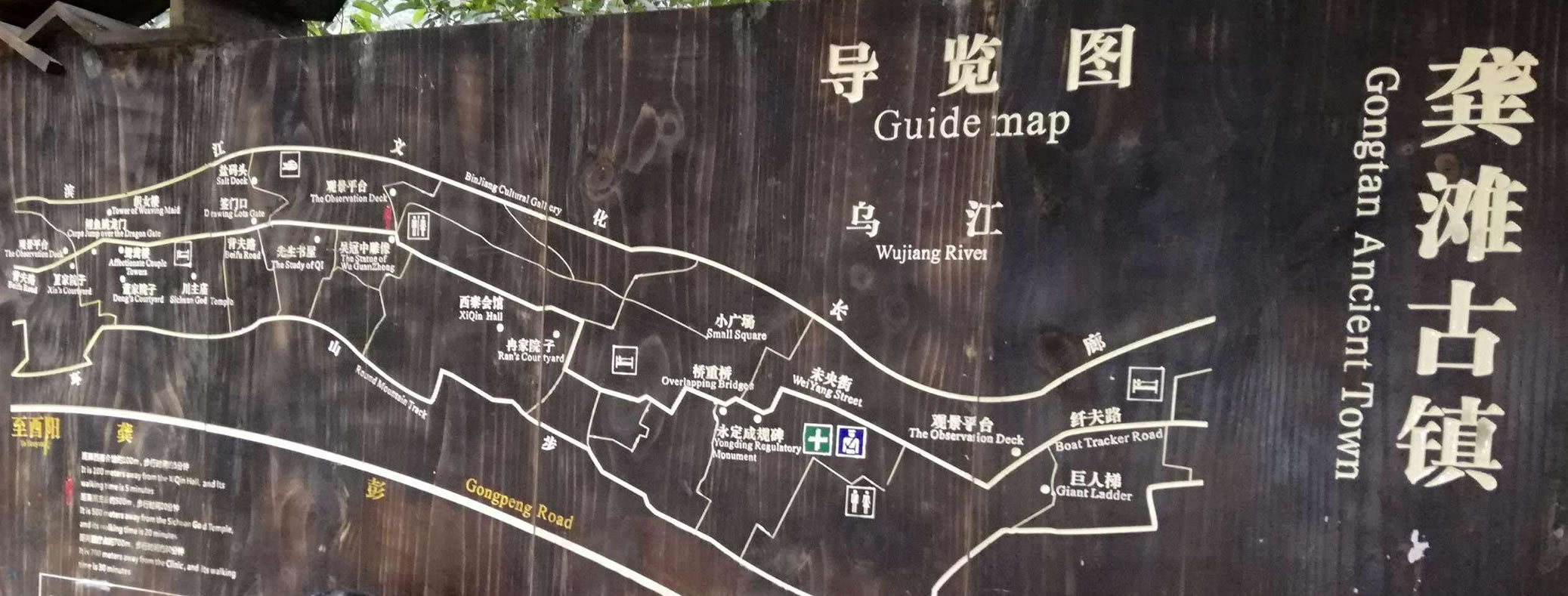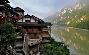 龔灘古鎮(zhèn)源自蜀漢,建置于唐,距今1800年的歷史。古鎮(zhèn)街道歷代修葺,至2005年總長約3千米,皆以石板街、吊腳樓、坡屋面、小青瓦為風(fēng)貌特征。其中老街長1.5千米,存寺廟、祠堂、古碼頭、古纖道、古梯道、古橋梁、古牌坊、古樹、古井、古碑石等。青石板街將古鎮(zhèn)按照不同的歷史背景、民族文化以商業(yè)業(yè)態(tài)形式布局為五段,以榨油、織布為特色的“油坊路”,以背夫腳夫文化為主題的“背夫路”,以西秦會館為代表建筑的“西秦路”,展示纖夫文化的“纖夫路”,以鹽商鹽號為特色的“老鹽路”。有50余堵別具一格的封火墻、200多個(gè)古樸幽靜的四合院、50多座形態(tài)各異的吊腳樓,獨(dú)具地方特色,是中國國內(nèi)保存完好且頗具規(guī)模的明清建筑群。