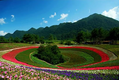 嫣彩織帶:各色鮮花呈帶狀鋪滿,五顏六色,艷麗斑駁。一條條彩帶猶如多條絲綢鋪展在草地上,在綿延起伏的山脈下形成一片彩色的海洋。近百畝的帶狀簡單構(gòu)圖,鋪天蓋地的霸氣給人豐富遐想,更像一條巨大的飄帶,給景區(qū)增加色彩的壯麗與斑斕。