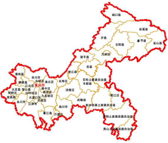 萬州 涪陵 渝中 大渡口 江北 沙坪壩 九龍坡 南岸 北碚 綦江 大足 渝北 巴南 黔江 長壽 江津 合川 永川 南川 璧山 銅梁 潼南 榮昌 開川 | ||