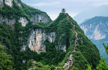 絕壁棧道位于龍缸景區(qū)映月洞至奓口石的游步道中,在數(shù)百米的懸崖上建設長約3320米的空中絕壁棧道,其中200米為全透明玻璃棧道。棧道分為牽手棧道和月影棧道兩個部分,徒步其間,一側是千尺奇峰,一側是深谷澗壑,仿佛驚險地行走在天地之間。