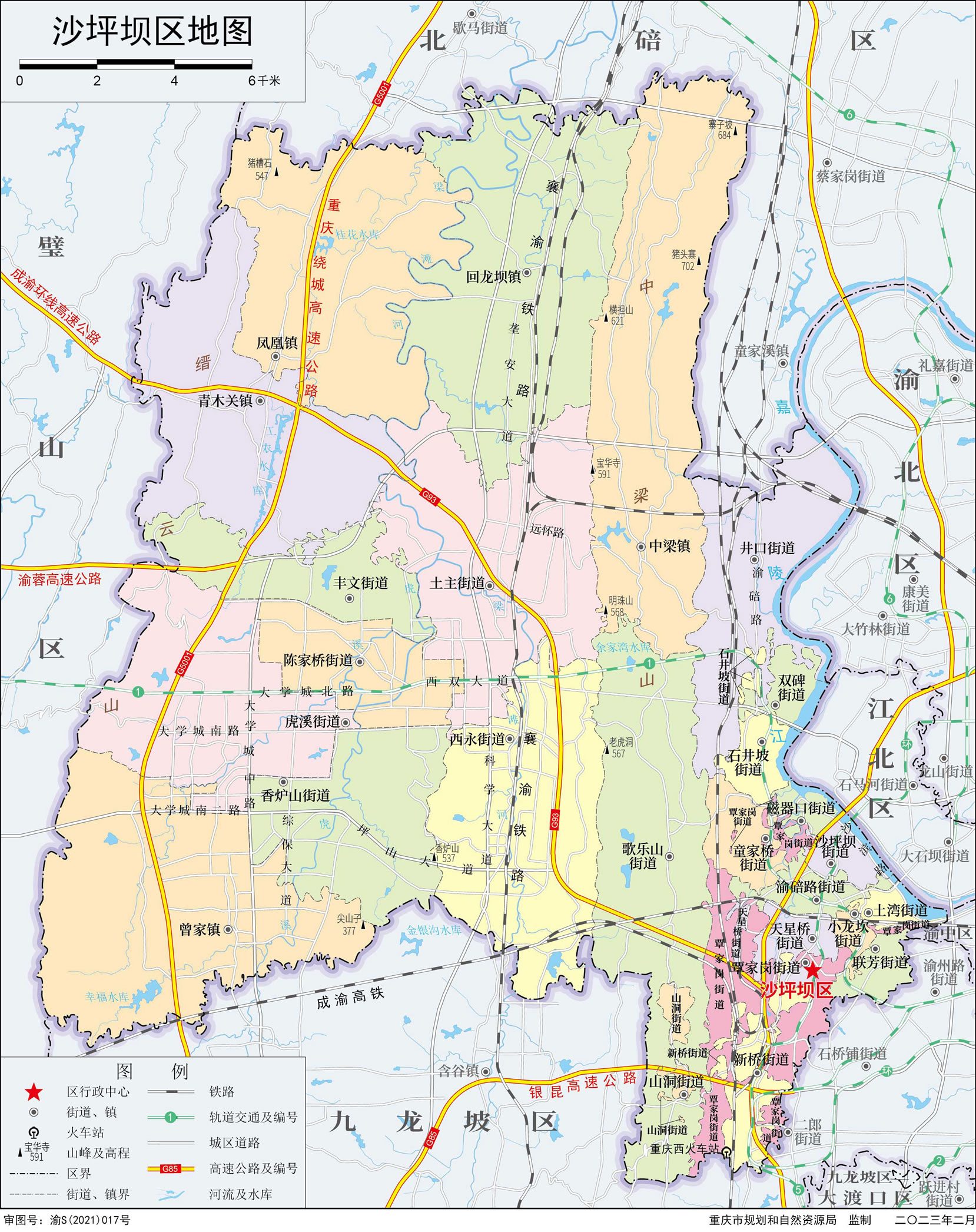 沙坪壩區(qū)轄21個(gè)街道、5個(gè)鎮(zhèn):