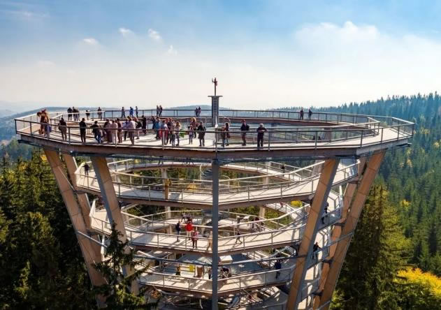 通過螺旋步道把人送到15米的高度,從而進(jìn)入森林高空體驗(yàn)棧道。同時(shí)開展攀巖、速降、攀爬等戶外體育運(yùn)動。