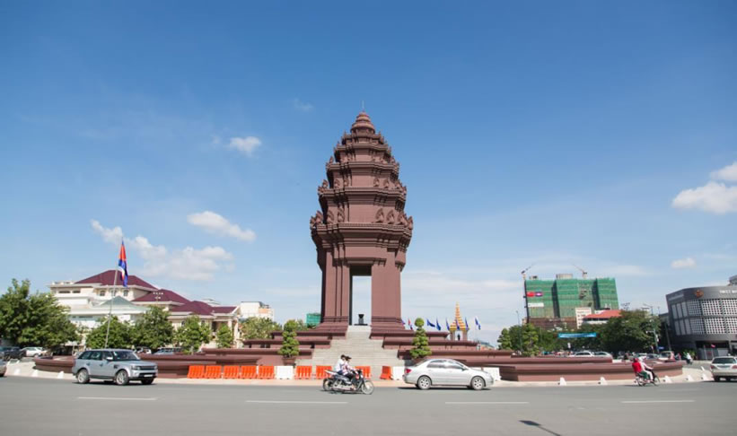 獨(dú)立紀(jì)念碑 柬埔寨獨(dú)立紀(jì)念碑位于諾羅敦大道和西哈努克大道交叉處,為紀(jì)念1953年11月9日柬擺脫法國殖民統(tǒng)治,獲得完全獨(dú)立而建。1958年3月落成,高37米,共7層,上有蛇神(柬文化象征)100條。每年獨(dú)立節(jié)時(shí),柬國王或國王代表都要在此舉行隆重的慶典。來訪的外國元首也多到這里獻(xiàn)花圈。