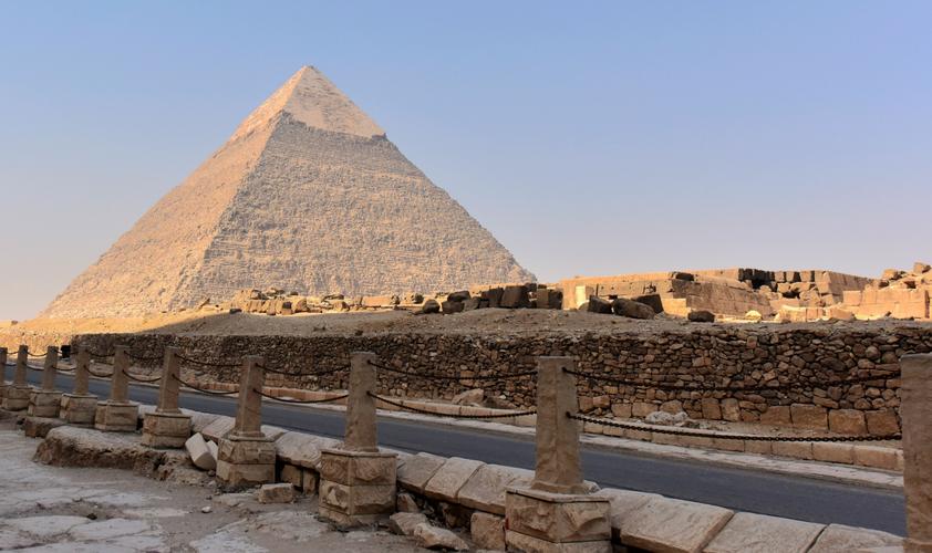 胡夫金字塔 胡夫金字塔位于埃及首都開(kāi)羅西南約10公里的吉薩高地。胡夫金字塔是埃及現(xiàn)存規(guī)模最大的金字塔,又稱吉薩大金字塔,是古埃及第四王朝的法老胡夫的金字塔,主要作為其陵墓,也是世界上最大、最高的埃及式金字塔。約建于前2580年,完工于前2560年。位于吉薩金字塔群的中央一座,也是最為高大的,被喻為“世界古代八大奇跡”之一。 在埃及境內(nèi)已發(fā)現(xiàn)的110座金字塔中,吉薩高地的祖孫三代金字塔——胡夫金字塔、海夫拉金字塔和門卡烏拉金字塔是最古老的金字塔。 金字塔,形狀像“金”字,它是一種方底尖頂?shù)氖鼋ㄖ,是古代埃及埋葬?guó)王、王后或王室其他成員的陵墓。它既不是金子做的,也不是我們通常所見(jiàn)的寶塔形。是由于它規(guī)模宏大,從四面看都呈等腰三角形,很像漢語(yǔ)中的"金"字,故中文形象地把它翻譯為"金字塔"。