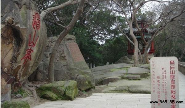 (二)于 山 位于鼓樓區(qū)東南部。相傳戰(zhàn)國時期因有于越族居此而得名。閩越王每年九月初九日在此登高,大宴賓客,又稱九日山。漢代有臨川何氏九兄弟在此煉丹修仙,故又名九仙山。“文化大革命”時期曾改名紅巖山,1997年復(fù)名于山。面積11.9公頃,海拔58.6米。因山峰形似巨鰲,于是有六鰲勝跡:攬鰲亭、倚鰲軒、應(yīng)鰲石、接鰲門、步鰲坡、叢鰲峰,另有24景,如九日臺、獅子巖、集仙巖、小華峰等,F(xiàn)存宋、元、明、清及近代的摩崖石刻113段,其中宋刻35段,明、清占大半。