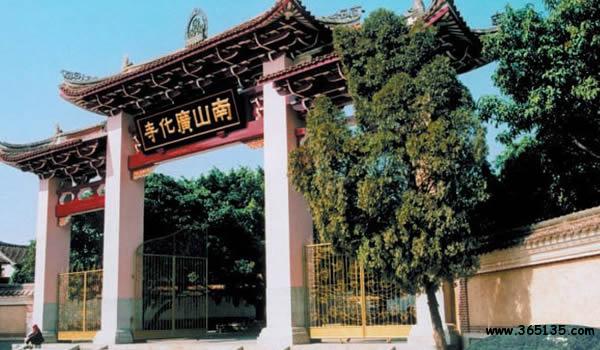 南山廣化寺:座落在城南鳳凰山。現(xiàn)行建筑群是清光緒初年依舊制重修的,從20世紀80年代開始,進行了大規(guī)模的擴建。山門照壁上有中國佛教會已故會長趙樸初題寫的“莊嚴國土,利樂有情”。廣化寺占地3.2萬多平方米,建筑物面積1.7萬平方米。踏入山門,沿著中軸線建筑拾級而上,全長385米。依次是照壁、牌坊、山門、放生池、彌勒殿(天王殿)、大雄寶殿、法堂(上為藏經(jīng)閣)、臥佛殿(下為祖堂);兩側(cè)翼建有寬敞的石柱廊廡,東側(cè)次第為東羅漢殿、鐘樓、五觀堂、伽藍殿、尊客堂、水云鄉(xiāng)、圓通門、溪聲閣;西側(cè)次第為西羅漢殿、鼓樓、學(xué)戒堂、祖師殿、凈行堂(念佛堂)、煙霞窟、方丈室、看山樓。寺后東西兩角的最高處,分別聳立著觀音閣和小南山。南山上有幾十株不知年代的蒼松翠柏。
