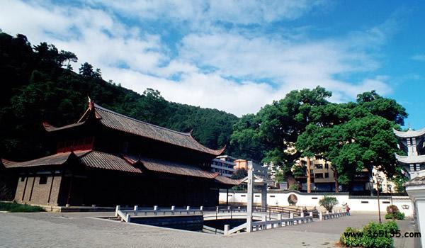 南溪書(shū)院:在尤溪縣城南的公山之麓,原為邑人鄭義齋館舍。北宋宣和五年(1123年),朱熹之父朱松任尤溪縣尉,去官后寓居于此。南宋建炎四年(1130年),朱熹在此誕生。朱熹逝世后,縣令李修于嘉熙元年(1237年)捐資在此修建文公祠、韋齋祠、半畝方塘和尊道堂等建筑,祀朱家父子。寶元年(1253年),宋理宗賜額“南溪書(shū)院”。元至正元年(1341年),分建二祠,明清后屢有修繕擴(kuò)建。書(shū)院古樸莊嚴(yán),現(xiàn)建筑面積1000平方米,有韋齋祠、觀書(shū)第、毓秀坊、毓秀亭等建筑。正堂當(dāng)中立朱熹石膏塑像,兩旁是朱子手書(shū)板聯(lián)四幅:“讀書(shū)起家之本 和順齊家之本 勤儉治家之本 循理保家之本”。四壁高懸其上溯八代列祖列宗畫(huà)像。書(shū)院內(nèi)的方塘,為朱熹幼年讀書(shū)處。朱熹《觀書(shū)有感》詩(shī)曰:“半畝方塘一鑒開(kāi),天光云影共徘徊;問(wèn)渠那得清如許,為有源頭活水來(lái)”。其中的“半畝方塘”即指此處。明弘治十一年(1498年),知縣方溥主持,把半畝方塘擴(kuò)大浚深,并建亭于塘上,通以石橋,取名“活水亭”,今皆修復(fù)。