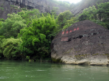 峰頂胡麻澗旁的石壁上,有歷代摩崖石刻近百處。其中最大一幅為“第一山”,系道光壬辰冬武顯將軍嶺南徐慶超題寫(xiě)。意思是說(shuō)天游峰即是“武夷第一勝地”,理應(yīng)號(hào)稱(chēng)“第一山”。也有人解釋說(shuō),武夷山是道教名山,列三十六洞天中的第十六升真元化洞天。