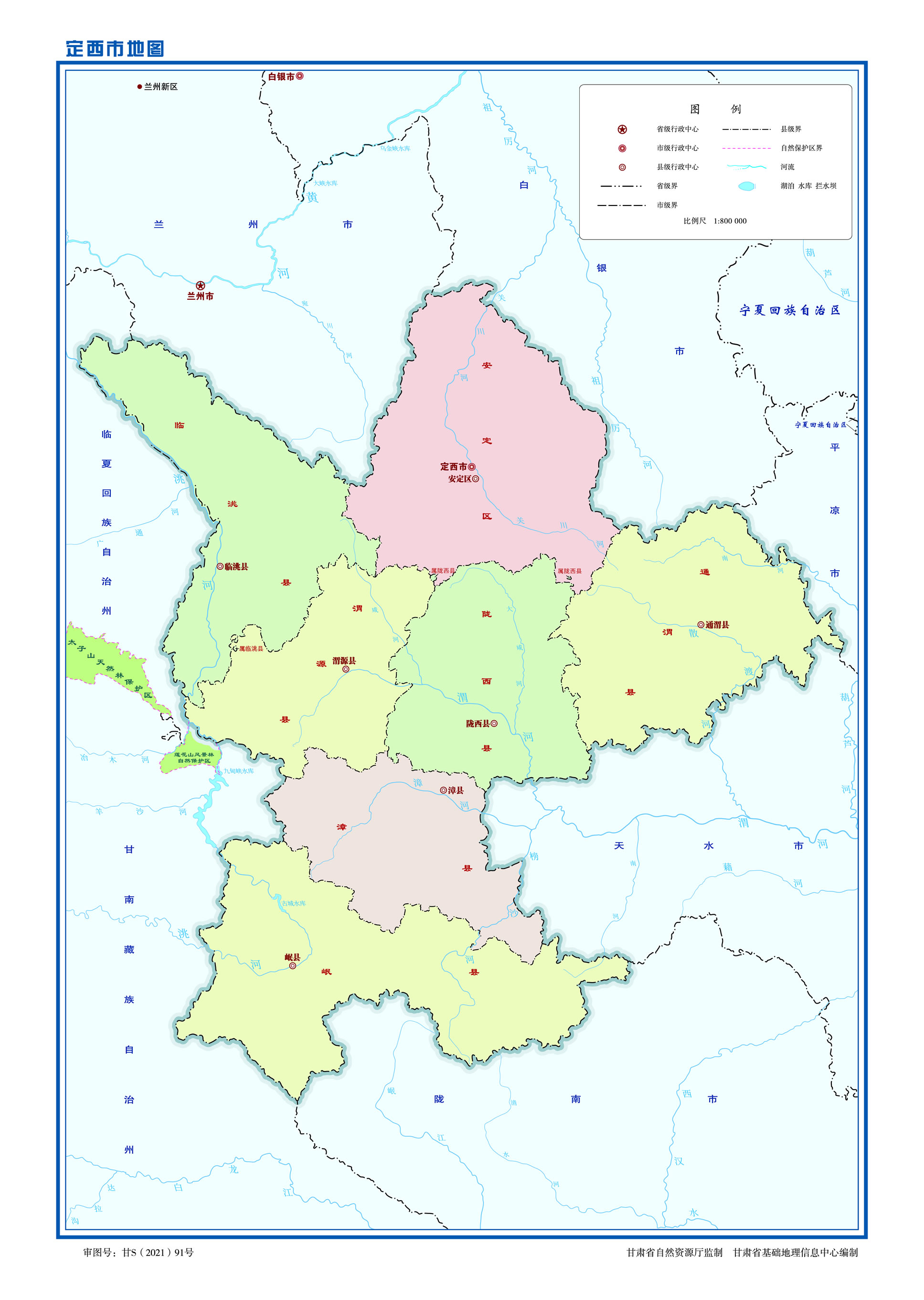 定西市轄1個(gè)市轄區(qū)、6個(gè)縣:
