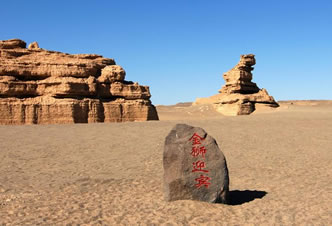塔狀雅丹,是雅丹地貌發(fā)育壯年期的產(chǎn)物。由于風吹、雨淋、水沖,大型雅丹體被侵蝕,沿裂隙不斷崩塌而逐漸變小,形成了如雄獅伏臥的景觀。它似乎在注視和迎接著遠道而來的游客。