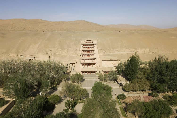 敦煌位于甘肅省的西部,從自然地理的位置上說,正處在河西走廊的西部盡頭處。這里南接青海,西連新疆,自漢代以來一直就是中西交通的樞紐。它的開鑿從十六國時期至元代,前后延續(xù)約1000年,這在中國石窟中絕無僅有。它既是中國古代文明的一個璀璨的藝術(shù)寶庫,也是古代絲綢之路上曾經(jīng)發(fā)生過的不同文明之間對話和交流的重要見證。莫高窟現(xiàn)有洞窟735個,保存壁畫4.5萬多平方米,彩塑2400余尊,唐宋木構(gòu)窟檐5座,是中國石窟藝術(shù)發(fā)展演變的一個縮影,在石窟藝術(shù)中享有崇高的歷史地位?邇(nèi)繪、塑佛像及佛典內(nèi)容,為佛徒修行、觀像、禮拜處所。敦煌石窟是建筑、雕塑、壁畫三者結(jié)合的立體藝術(shù)。洞窟分南北兩區(qū):南區(qū)492個洞窟是莫高窟禮佛活動的場所,北區(qū)243個洞窟主要是僧人和工匠的居住地,內(nèi)有修行和生活設(shè)施土炕坑、煙道、壁龕、燈臺等,但多無彩塑和壁畫。
