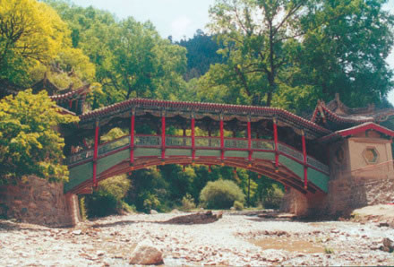 經(jīng)明末戰(zhàn)亂之后,山里的香客已經(jīng)絕跡,只留下寂靜的空山。谷內(nèi)原有一座臥橋,當(dāng)時(shí)已被洪水沖毀,只剩下兩個(gè)橋墩。劉一明觸景生情,無(wú)限感傷,立志要把此山修整一番,恢復(fù)“興隆”勝跡。于是他行醫(yī)治病,為興隆山募集資金。經(jīng)過多年的努力,在山上修建了百十座殿閣亭樓,還架起了一座宏偉的木拱橋,當(dāng)時(shí)取名“迎善橋”,意思是迎接八方的善士。從此,興隆山的香火四季不衰。后來(lái)山洪暴發(fā),橋又被沖跨,劉一明非常惋惜,束手無(wú)策。他有一個(gè)徒弟叫唐童,一天在邊采藥,見有人落水,便不顧一切地下水搭救,救上岸一看,是個(gè)又瞎又聾的老婆婆。唐童沒有嫌棄老人,而是替她換好衣裳,找來(lái)許多食物給她吃。老婆婆覺得唐童善良,就送給他一根三寸長(zhǎng)的麥秸,說遇到河流擋路,它可以當(dāng)橋。唐童接過麥秸,正要道謝,老婆婆忽然不見了。唐童想驗(yàn)證老婆婆的話,來(lái)到河邊,把麥秸放在河上,轉(zhuǎn)眼間就成了一座精美的橋。從此,這座橋再也沒有被洪水沖跨過。
