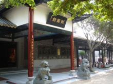 龍圖館極具嶺南古代建筑風格。前后有廊,中間有天井,風火山墻。館外館內均有不少磚雕、木雕、泥塑、灰塑等,造工精巧,古樸典雅。大門外18棵羅漢松排列成行,象征包公出巡時的儀仗隊。旁邊是一排紅花紫薇,開花時節(jié),嫣紅翠綠,相映成趣。“龍圖館”橫匾下,有對聯(lián):“木石有靈再現(xiàn)包公清正事,匠師無憾巧傳百姓仰廉情”,“投硯鎮(zhèn)江流尚有遺待明古訓,蜚聲留宋典不曾枉法負平生”。既頌揚了包公輝煌政績,又突出了龍圖館的文化內涵。