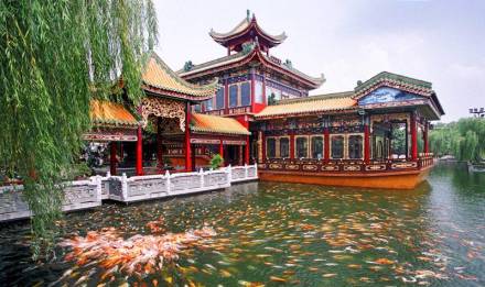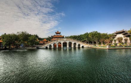 正門的白石仿古牌坊,雄偉巍峨,巧奪天工。園中的陶塑、瓷塑、磚雕、灰塑、石刻、木雕等藝術精品琳瑯滿目。驚世之作,當數(shù)已列入大世界吉尼斯之最的瓷塑浮雕《清明上河圖》和巨幅磚雕《吐艷和鳴壁》。荔島中的聚家閣金碧輝煌,雍容華麗,閣內供奉著萬世師表孔子銅像,供游人瞻仰。
