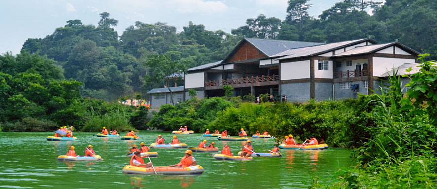 平果鴛鴦灘漂流景區(qū)位于平果縣馬頭鎮(zhèn)金顯村,距南寧市區(qū)120公里,距平果縣城區(qū)15公里,鴛鴦灘漂流景區(qū)擁有瀨江河不可多得的自然溪谷景觀。漂流河段全長4.8公里,流經八彎九灘,多半河段被森林全覆蓋,景區(qū)內森林茂密,藤蘿垂懸,空氣清新自然,空氣中負氧離子含量達10000多個。
