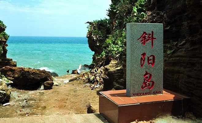 斜陽島,位于潿洲島東南海面上,亦由火山噴發(fā)堆積形成,距潿洲島9海里,距北海市區(qū)44海里,面積1.89平方公里。因從潿洲島可觀太陽斜照此島全景,又因該島橫亙在潿洲島東南面,南面為陽,故稱斜陽島。島上冬暖夏涼,野花繁多,森林原始,山徑迷離,海蝕、海積及溶巖景觀奇特。斜陽島上住著200多客家人。