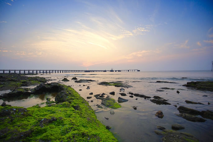 僑港浴場(chǎng)位于北海銀灘西部?jī)S港鎮(zhèn),東起僑港道航燈塔,西至天湖酒店往西350米。灘寬500米左右,由純靜的高品位石英砂經(jīng)千年堆積而成,其砂子雪白如銀,細(xì)膩柔滑。