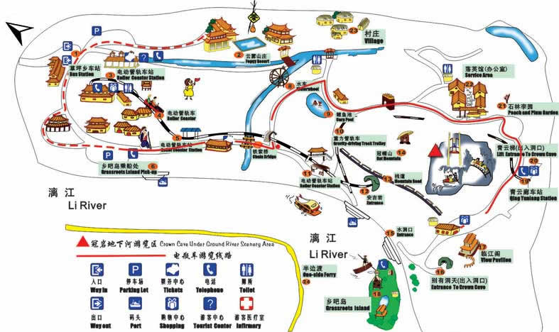 冠巖景區(qū)占地面積6000余畝,形成了以冠巖地下河為中心的集旅游觀光、會議療養(yǎng)、食宿娛樂為一體的桂林最大型綜合游覽度假區(qū)。其中冠巖全長12公里,巖洞規(guī)模宏大,氣勢恢弘,鐘乳石琳瑯滿目,色彩斑斕,現(xiàn)有洞內(nèi)游程3公里,洞內(nèi)共有步行、乘坐觀光滑道、乘觀光電梯、乘坐洞內(nèi)小火車、在地下河浮橋中漫步等5種游覽方式,游覽時間約90分鐘。