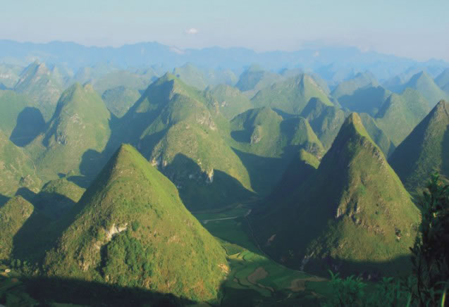 地形地貌 鳳山位于云貴高原南緣,是一個(gè)由高原向準(zhǔn)平原過(guò)渡的斜坡地帶,地勢(shì)大致呈西部和西北部向東南部?jī)A斜,東北部向東北角傾斜。全縣地形起伏,最高海拔1318米,最低海拔262米,最大高差為1056米,一般高差300~500米。鳳山多山,溝壑縱橫,有長(zhǎng)期性的流水在境內(nèi)匯集成河。沿河兩岸,地勢(shì)平緩,有長(zhǎng)條形的或珠串狀排列的小平地。小平地土層深厚,土壤肥力良好,是縣內(nèi)水稻主產(chǎn)區(qū)。