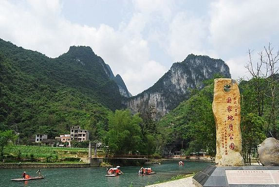 廣西樂(lè)業(yè)-鳳山世界地質(zhì)公園,位于廣西西北部云貴高原向廣西盆地過(guò)渡的斜坡地帶,由百色市樂(lè)業(yè)大石圍天坑群國(guó)家地質(zhì)公園和鳳山巖溶國(guó)家地質(zhì)公園組成,總面積930平方千米,F(xiàn)已發(fā)現(xiàn)大小天坑30個(gè),是世界上最大的天坑群之一。地質(zhì)公園區(qū)中鳳山三門海景區(qū)擁有高穴馬王洞和水上天坑等地質(zhì)遺跡。天坑群中以大石圍天坑規(guī)模最大,深度和容積居世界第二;坑底森林面積10.5 萬(wàn)平方米。