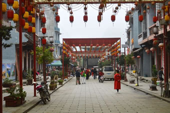 舊州主街長度約三百米,是舊州古鎮(zhèn)的主干道,也是本地民間各類民俗慶典活動的主要舉辦場地——如每年大年初一的舞龍舞獅、二月初二龍?zhí)ь^、八月初二的祭神長桌宴等。主街繡球陣共由99根紅柱,666個(gè)繡球組成,寓為“長長久久,六六大順”!