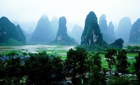 桂林市漓江景區(qū)區(qū)域地形特點是北、東、西部較高,為碎屑巖中低山地貌。北部是五嶺之一的越城嶺,最高峰貓兒山,海拔2142米;東部為北東一南西走向的海洋山,主峰寶界嶺海拔1936米;西部是南北走向的天平山和駕橋嶺,主峰海拔皆在千米以上。景區(qū)中部為漓江巖溶谷地,南北長120余公里,東西寬20一60公里,發(fā)育有巖溶侵蝕平原,峰叢洼地和峰林平原等地貌類型,是一個較完整的水文地質(zhì)單元。沿漓江分布有一系列的盆地。在溶蝕侵蝕平原和低地上,峭立著眾多的石峰并發(fā)育有大量的洞穴。從大圩以南的潛經(jīng)村開始,漓江進入峰叢洼地的峽谷段,深切河谷相對高程達400余米,組成了綿延百里,馳名中外的巖溶山水畫廊。