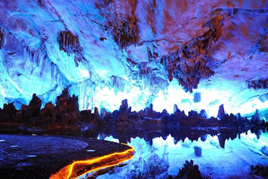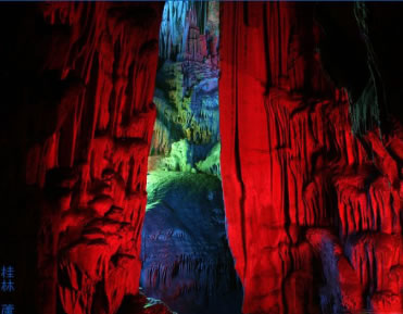 “桂林山水甲天下,蘆笛美景堪最佳。”蘆笛巖是桂林山水一顆璀璨的明珠,蘆笛巖位于光明山南側山腰,洞深240米,游程近500米,是一處景致高度集中、景物極盡造化的神奇游覽佳境。在這個奇妙的巖洞中,琳瑯滿目的鐘乳石、石筍、石柱、石幔、石花擬人狀物,惟妙惟肖,構成了三十多處景觀,有“紅羅寶帳”、“高峽飛瀑”、“盤龍寶塔”、“原始森林”、“簾外云山”、“水晶宮”等,可謂移步成景,步移景換。整個巖洞猶如一座用寶石、珊瑚、翡翠雕砌而成的宏偉、壯麗的地下宮殿。